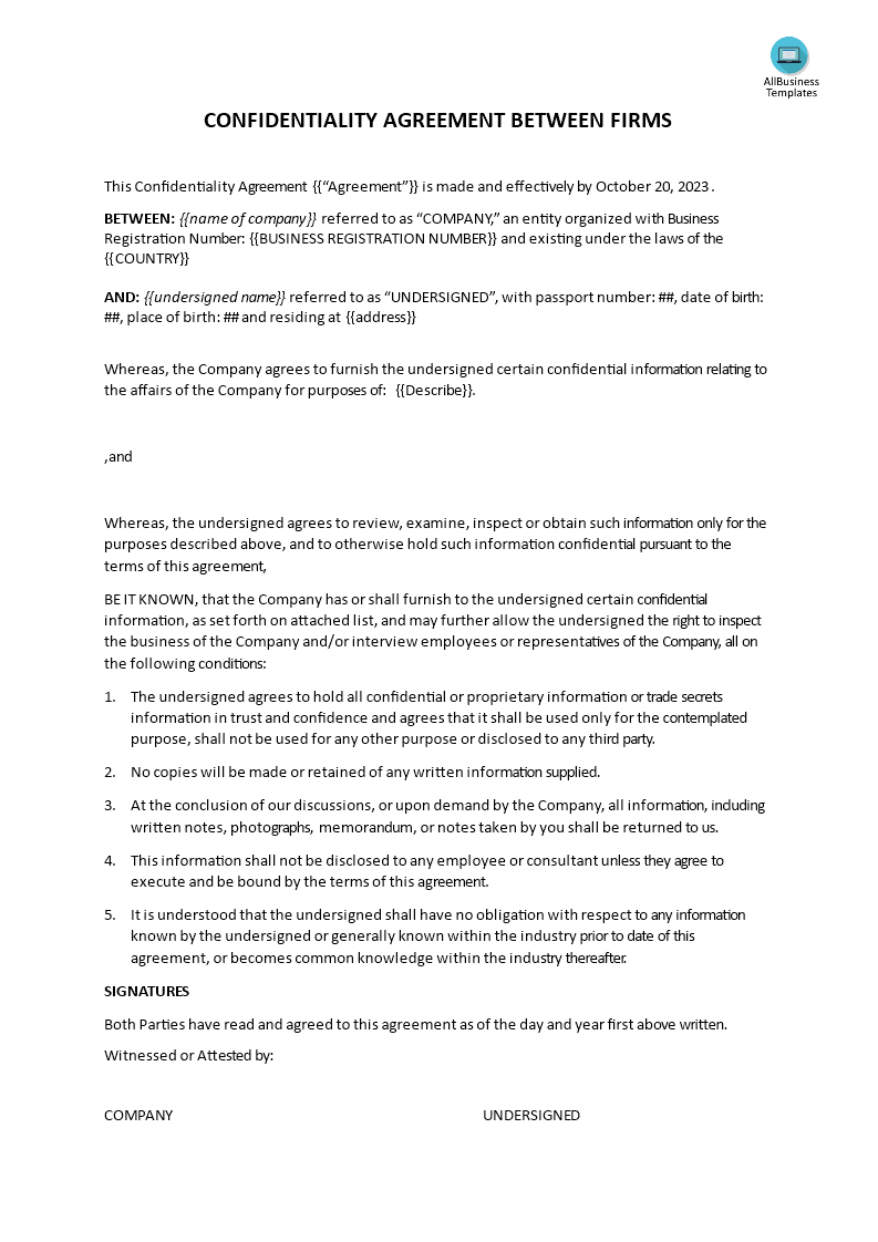 Interview Confidential Disclosure Agreement Template By Business In A Box