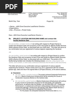 Site Handover Letter Handover Letter To Client Or Contractor Template