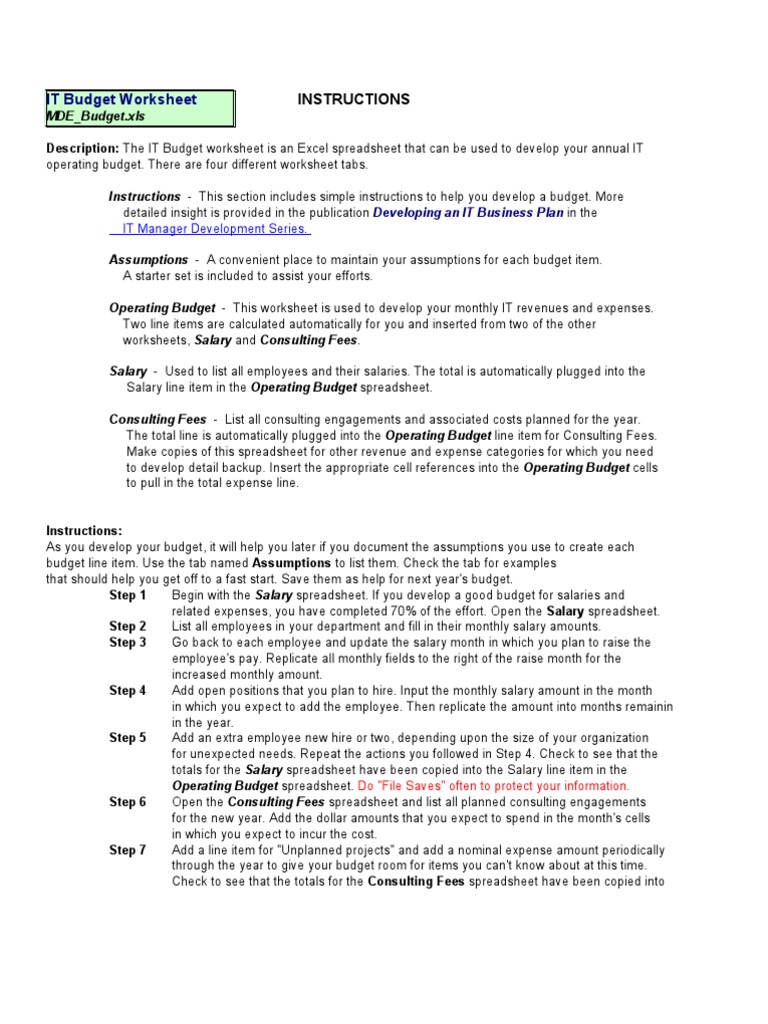 It Budget Template Spreadsheet Employment