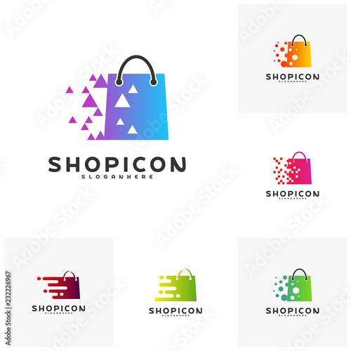 Set Of Online Shop Store Market Logo Template Design Vector Pixel Shop Logo Design Element Buy This Stock Vector And Explore Similar Vectors At Adobe Stock Adobe Stock