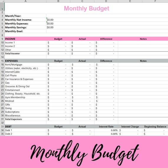 Personal Budget Planner Excel Budget Spreadsheet Template Etsy