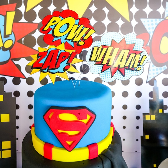 Boy Superhero Cake Topper Superhero Printable Cake Topper Zap Pow Wham Instant Download Print At Home With Adobe Reader By Sunshine Parties Catch My Party