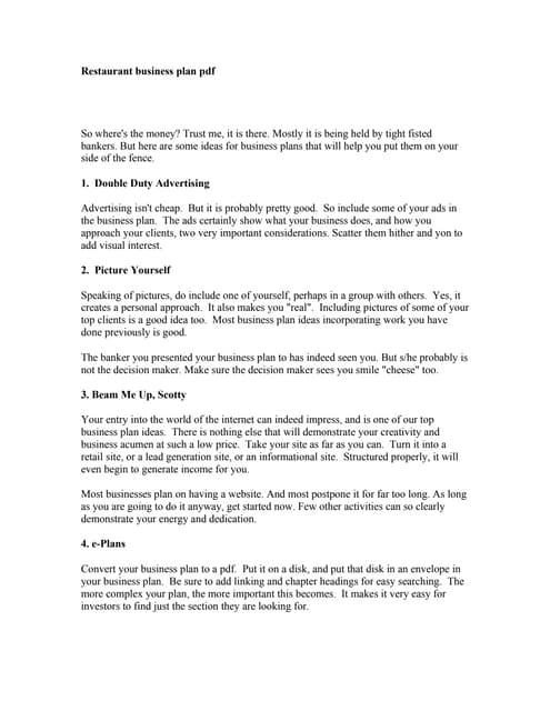 Business Plan For Restaurant Pdf
