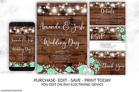 Mint Green Rose Wedding Invitation Printable Wedding Template Rustic Country Farmhouse Wedding Wedding Kit Quick Turnaround Diy Invite By Glamtasticinvites Catch My Party