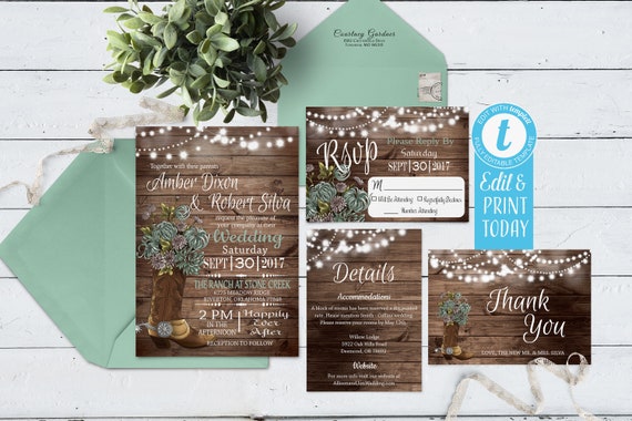 Whimsical Rustic Diy Wedding Invitation Set Mountainmodernlife Com