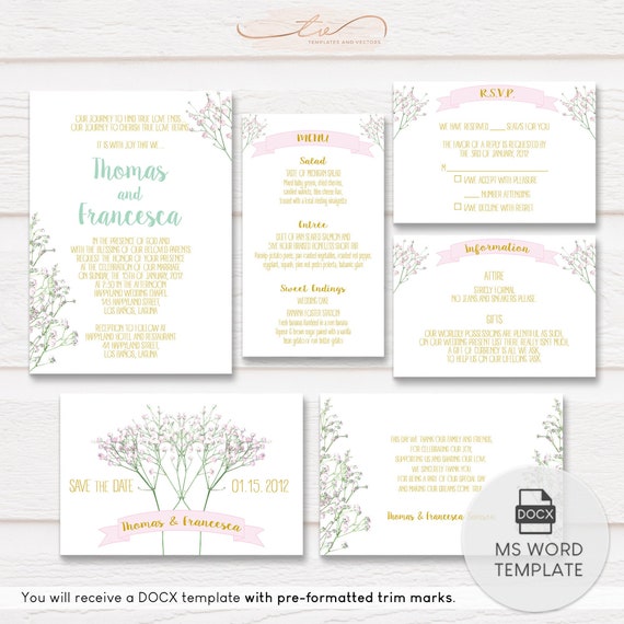Rustic Baby S Breath Wedding Invitation Template Etsy